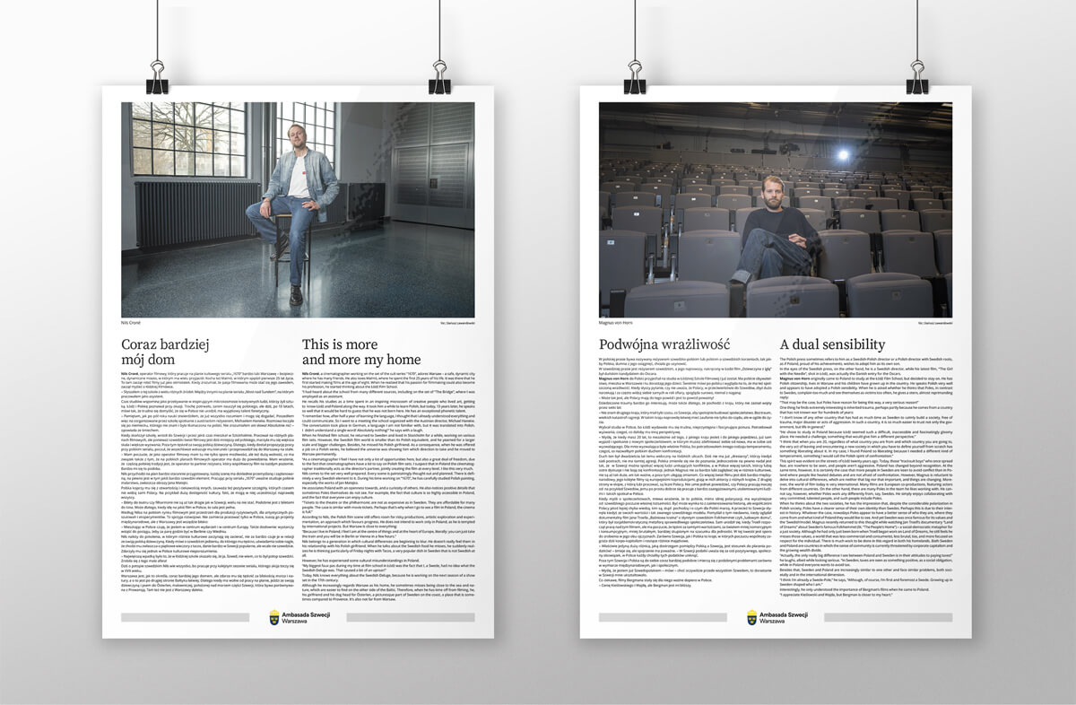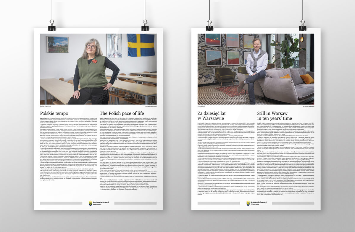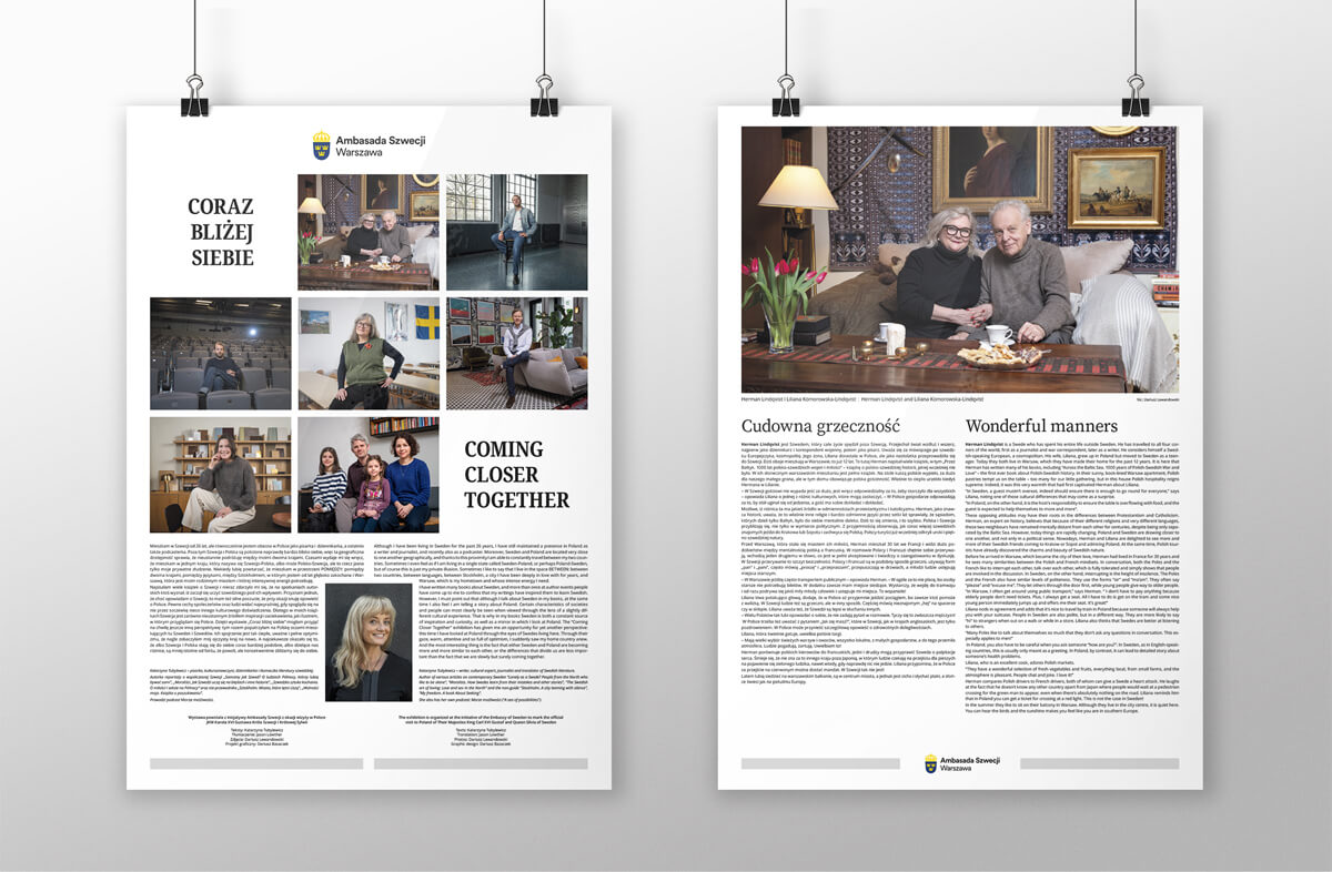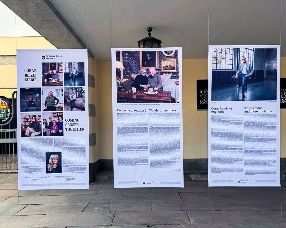 Opracowanie graficzne wystawy Ambasady Szwecji, poświęconej Szwedom mieszkającym w Polsce. Prace obejmowały zaprojektowanie 8 plansz w rozmiarach w wersjach 700 x 1000 mm i 700 x 1400 mm.