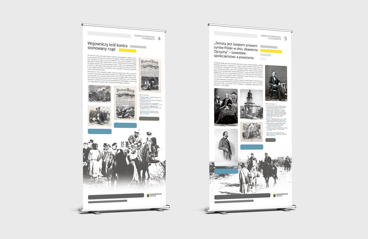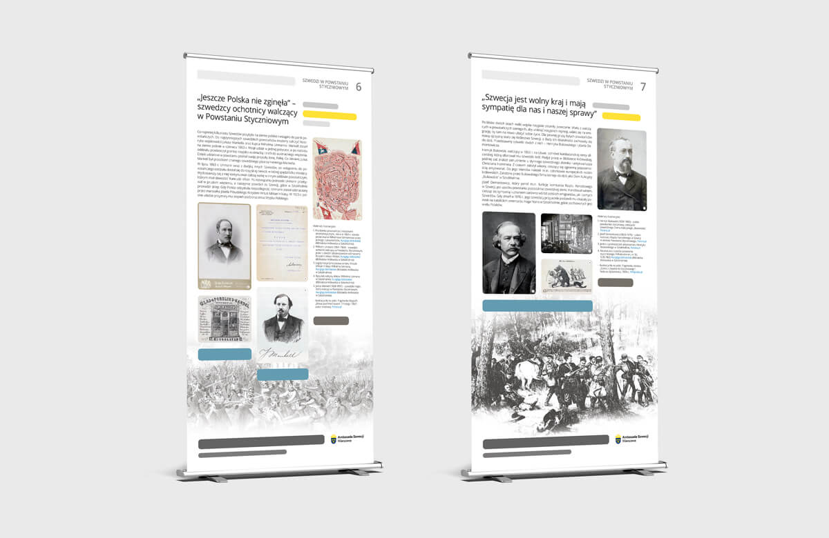 Opracowanie graficzne wystawy Ambasady Szwecji, prezentującej fakty historyczne, związane z udziałem Szwedów w Powstaniu Styczniowym w latach 1863 – 1864.